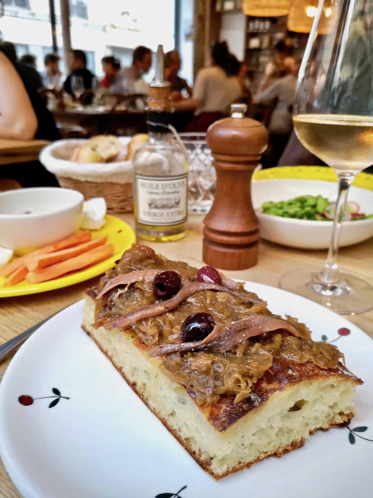 Une adresse à garder sous le coude pour un dîner entre amis sur la grande table à partager, à refaire le monde en tartinant de la tapenade sur sa fougasse pour faire comme si vous étiez dans le sud, à l’ombre. La déco est travaillée et très réussie. Ne ratez pas la pissaladière !