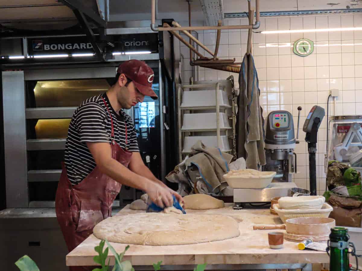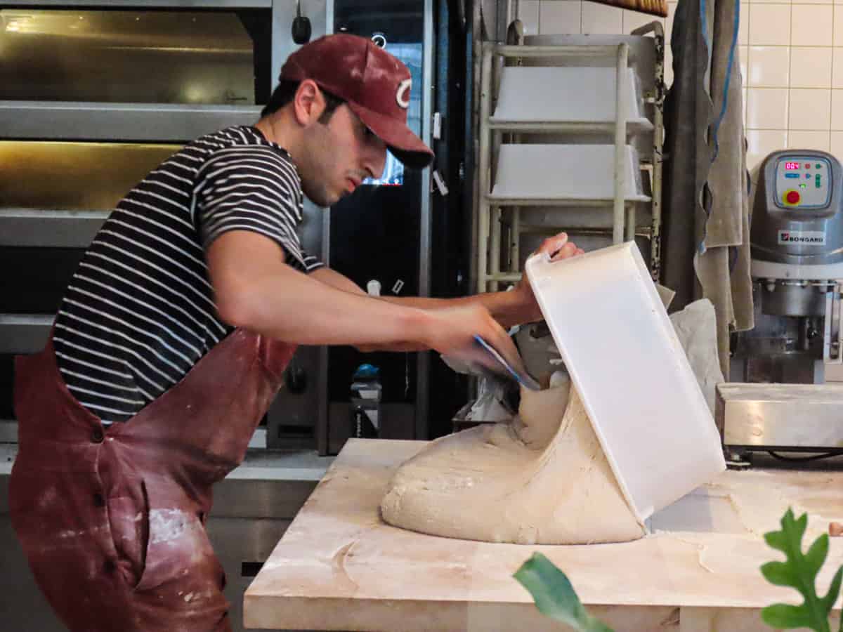 En ouvrant Atelier P1, Julien Cantenot souhaite revaloriser le pain, produit de base certes, mais un produit noble, une démarche et un travail du meunier au boulanger. Ici, il travaille le pain selon les techniques ancestrales de panification au levain naturel, il privilégie les farines des céréales anciennes non hybridées, celles-ci sont toutes issues de l’Agriculture Biologique. Il travaille avec 4 meuniers : Moulins de Chantemerle et Matignon en Seine et Marne avec le Rouge de Chantemerle (une variété incroyable de blé), le Moulins Pichard pour la farine de petit épeautre (engrain de son vrai nom) et la farine pois chiche de Haute-Provence, et Moulins Chambelland en Haute-Provence et Brunatti dans le Piémont pour la farine de riz.