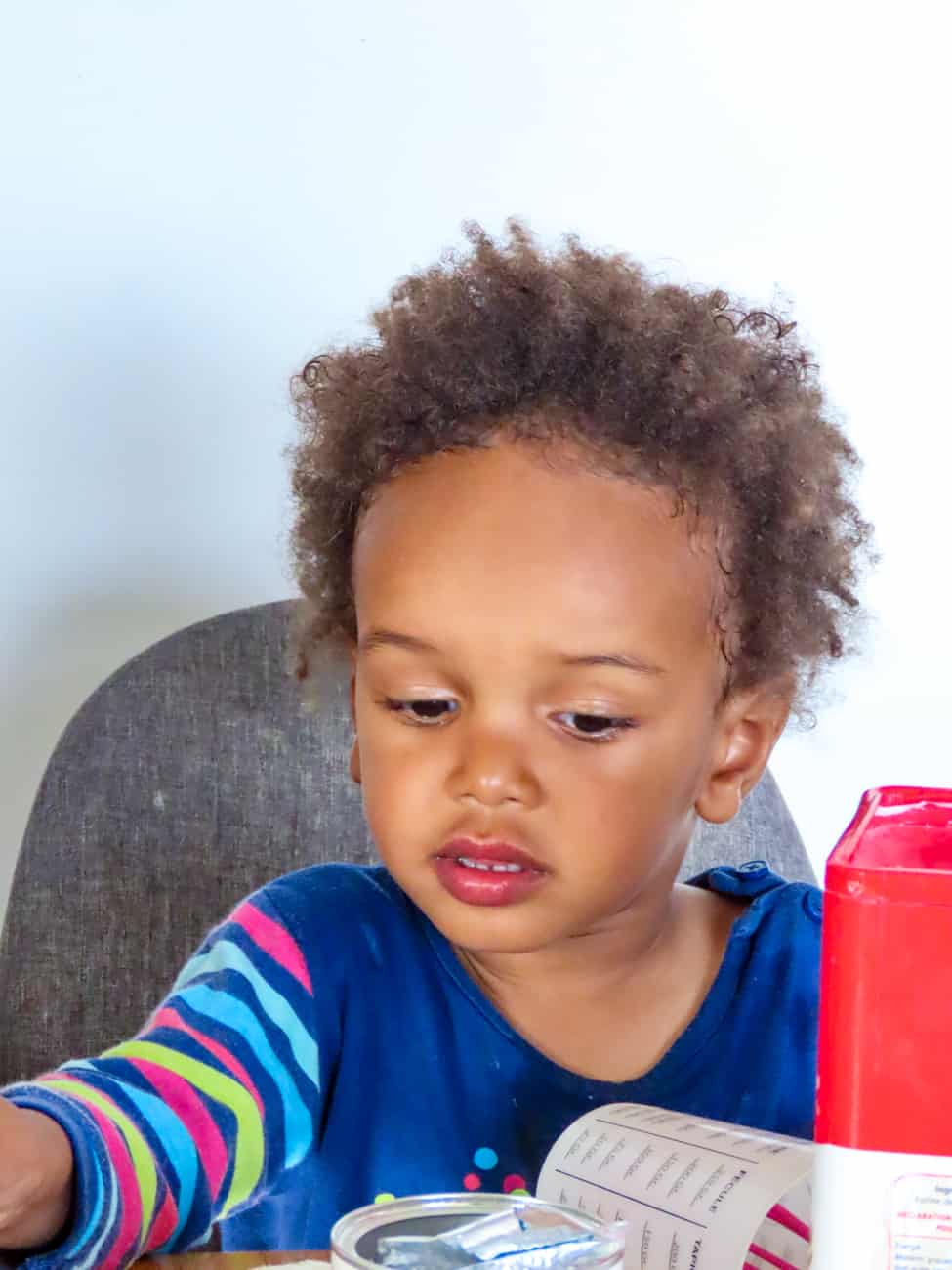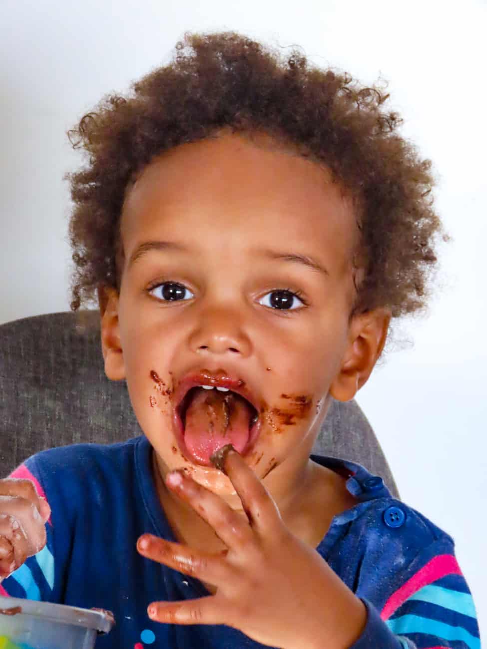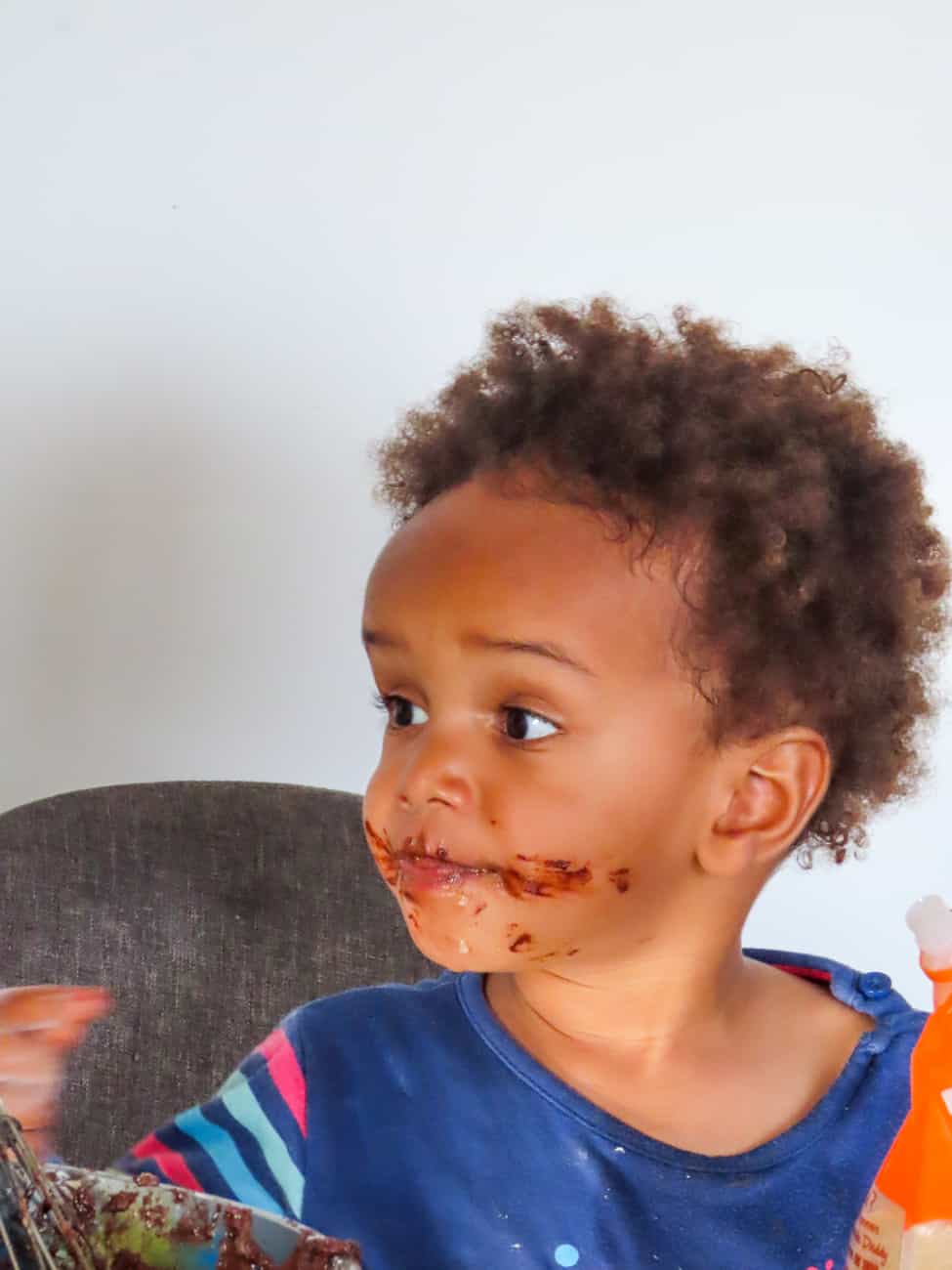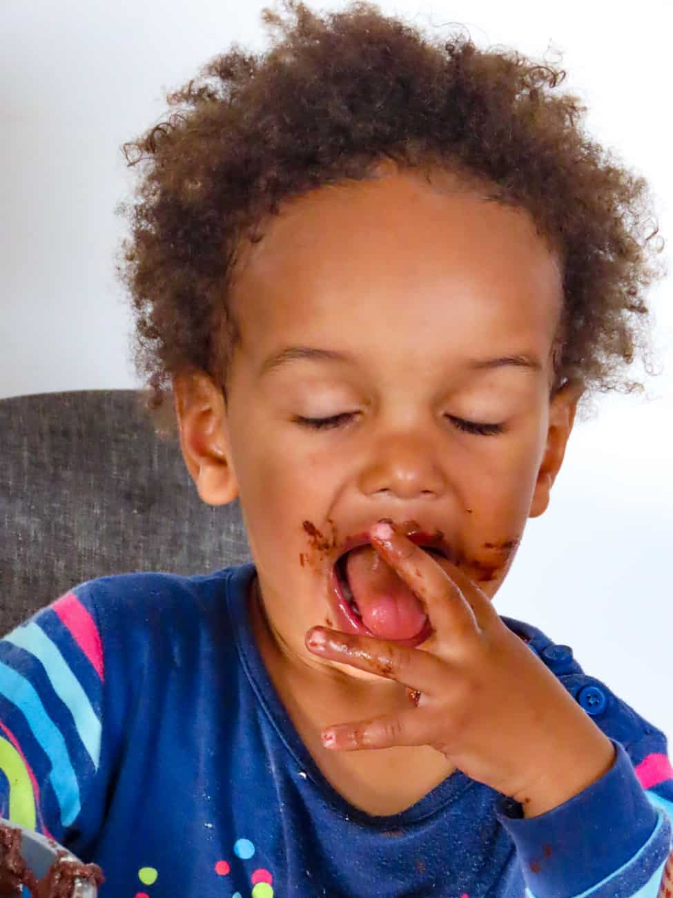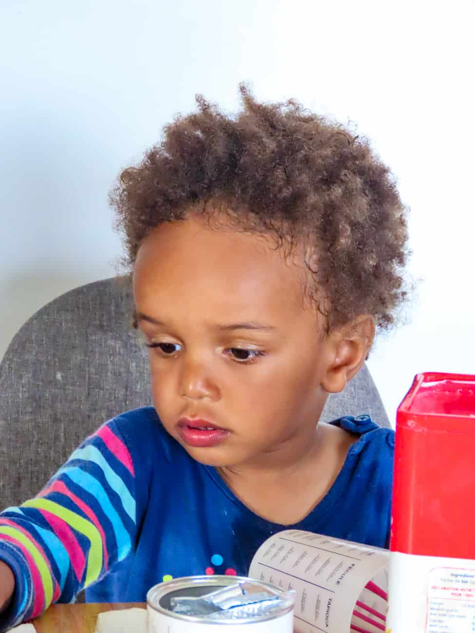 Dans la plupart des cas, quand ça les amuse de faire l’intégralité de la recette en totale autonomie, je tente de convertir les quantités en verres ou en nombre de cuillères et je retranscris la recette sur un tableau sur le mur. Inutile de préciser que tout ça n’est pas fait dans la plus grande propreté. Mais le nettoyage fait partie de la mission.