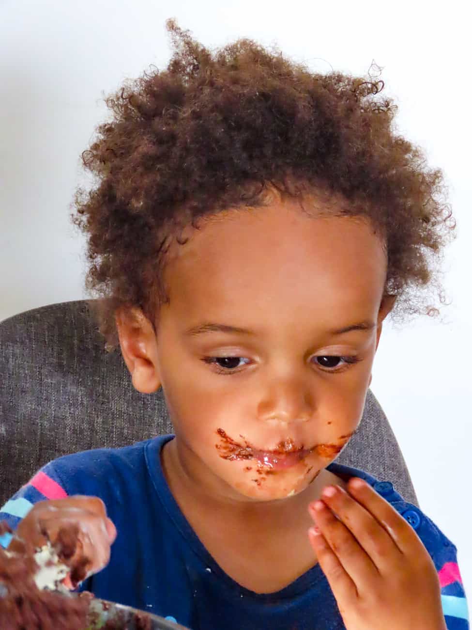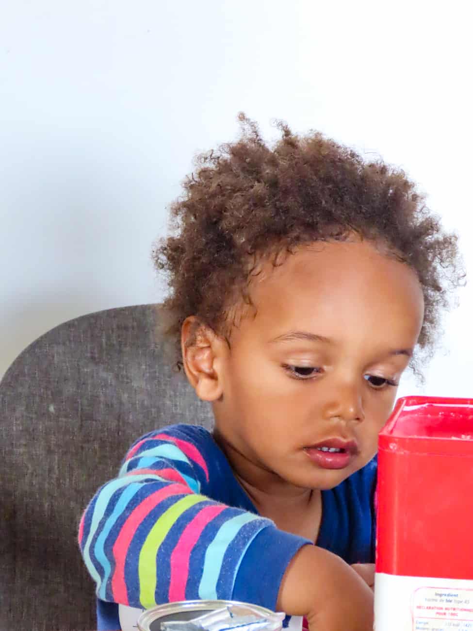 Faire à manger, fabriquer des gâteaux ou aider pour la préparation des repas est une activité pour laquelle mes enfants ont toujours été partants et enthousiastes. Zac, qui a 2 ans, semble hyper concentré alors qu’il est normalement encore difficile de le garder concentrer plus de 4 minutes. J’y vois, par ailleurs, des moments de partage, d’apprentissage et de gain d’autonomie. Compter les ingrédients, mesurer, transvaser, compter les cuillerées, apprendre le nom des ingrédients, faire attention à bien mélanger, à ne pas (trop) renverser, le plaisir de beurrer le moule mais surtout de lécher le plat…