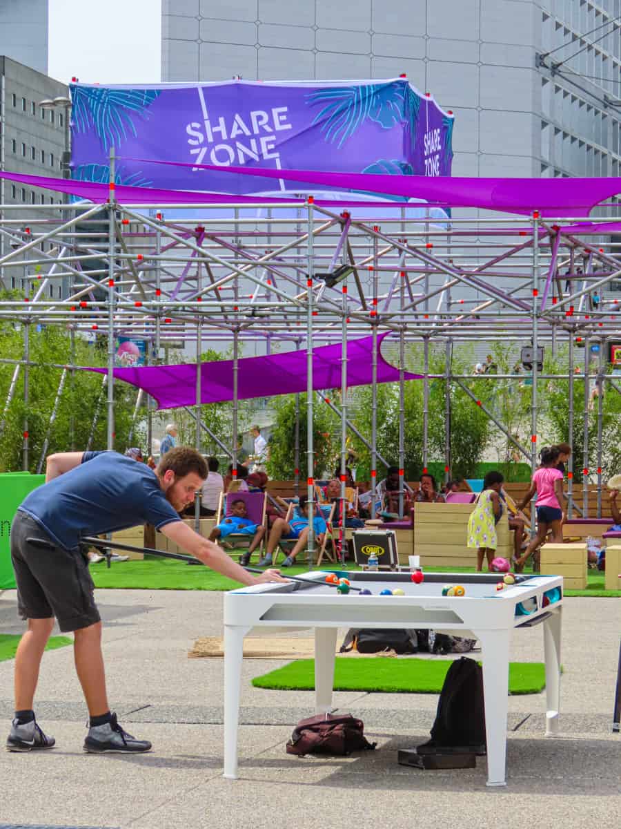 Tout l’été, Garden Parvis s’occupe de tout. Jour & nuit. Musique, food court, bars expérientiels, terrasses ombragées, concerts gratuits, pop-up stores, zones d’activités thématiques, ateliers pour petits et grands ! Le tout, gratuitement ! Prêt de matériel sportif (ping-pong, pétanque) et de livres et de super ateliers pour les enfants dès 6 mois ;).