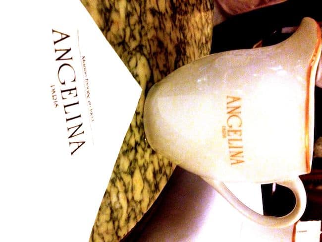 Mercredi 14 novembre, 17h00, l’hiver est définitivement arrivé, il fait froid, il fait gris, il fait nuit. Je suis vers les Champs Elysées et une envie me taraude depuis maintenant une bonne heure : un chocolat chaud. Pas du Nesquik, ni du Benco (à part sur les tartines avec du beurre), non un vrai chocolat chaud à l’ancienne. Pas de place pour les expérimentations, direction Angelina, une véritable dinette géante pou un goûter de luxe.