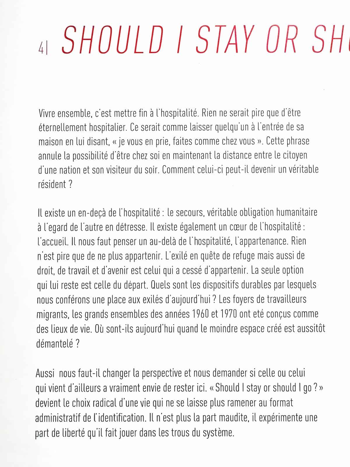 Le Musée de l’histoire de l’immigration et le MAC VAL (Musée d’art contemporain du Val-de-Marne) proposent une exposition commune sur le thème de l’exil et de l’hospitalité à travers le prisme de l’art et de la création contemporaine… Une expo qui retrace, à travers des photos, des oeuvres, des courts métrages, et des textes les étapes de l’exil : Appels d’urgence, Désenchantement, La Main (dé)tendue, Should I Stay or Should I go et Désirs d’Horizons.