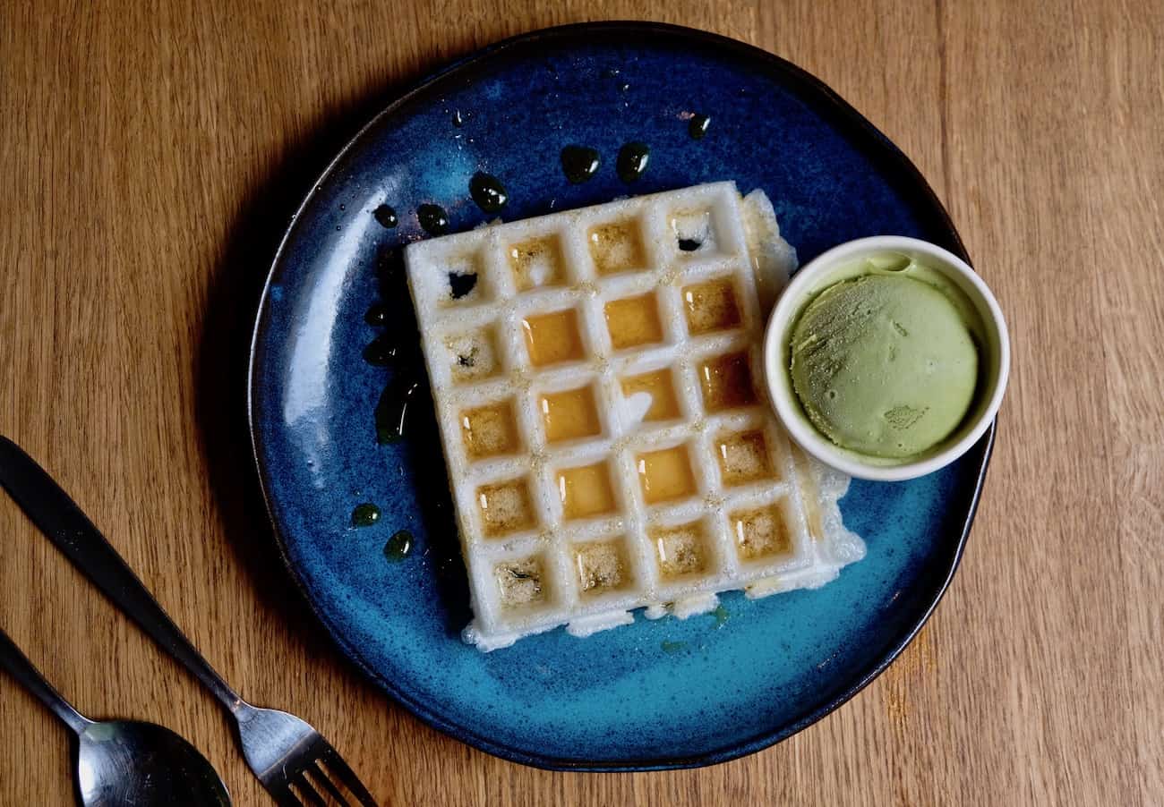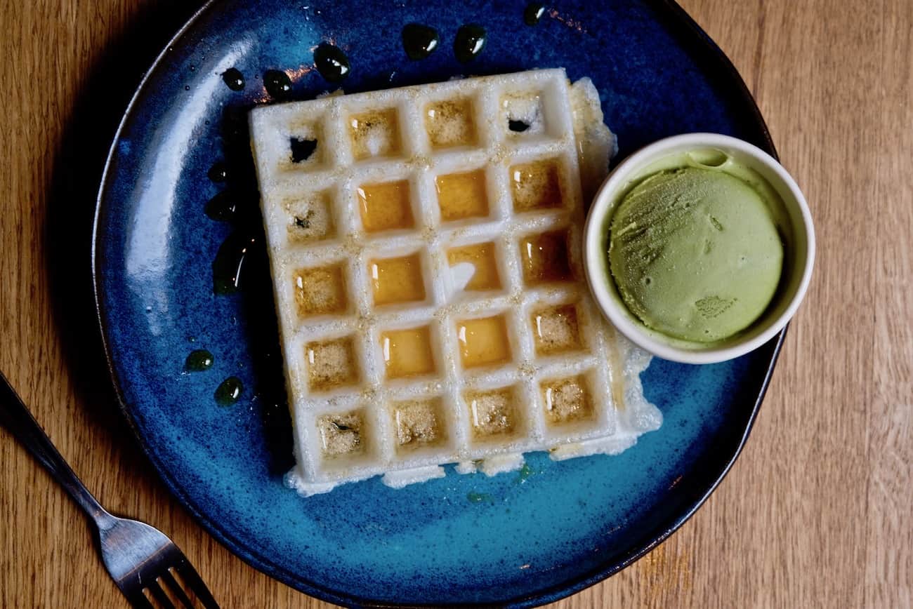 Gaufre au miel, glace thé vert