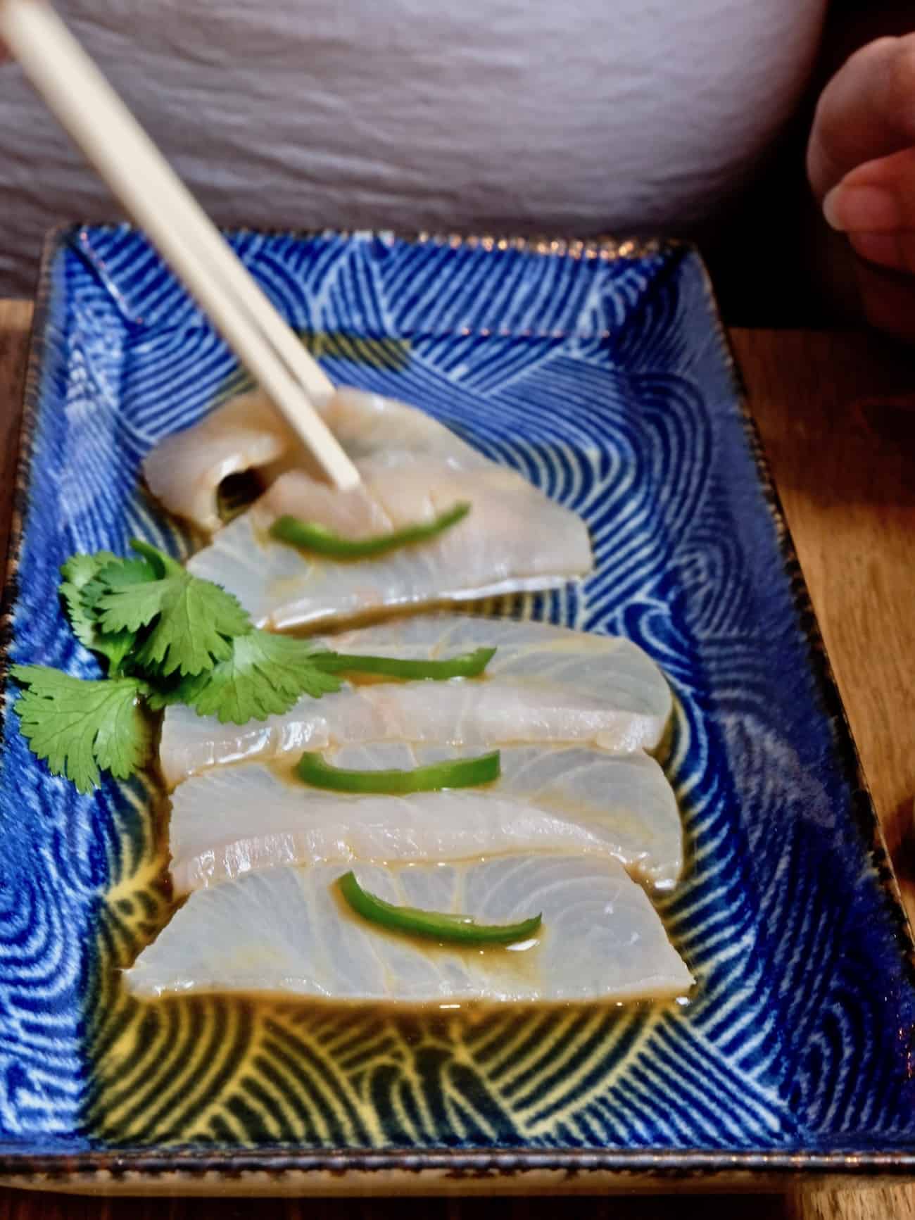 Carpaccio de Yellow Tail, piment frais, sauce yuzu