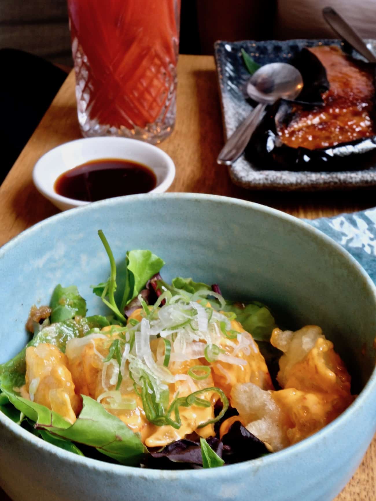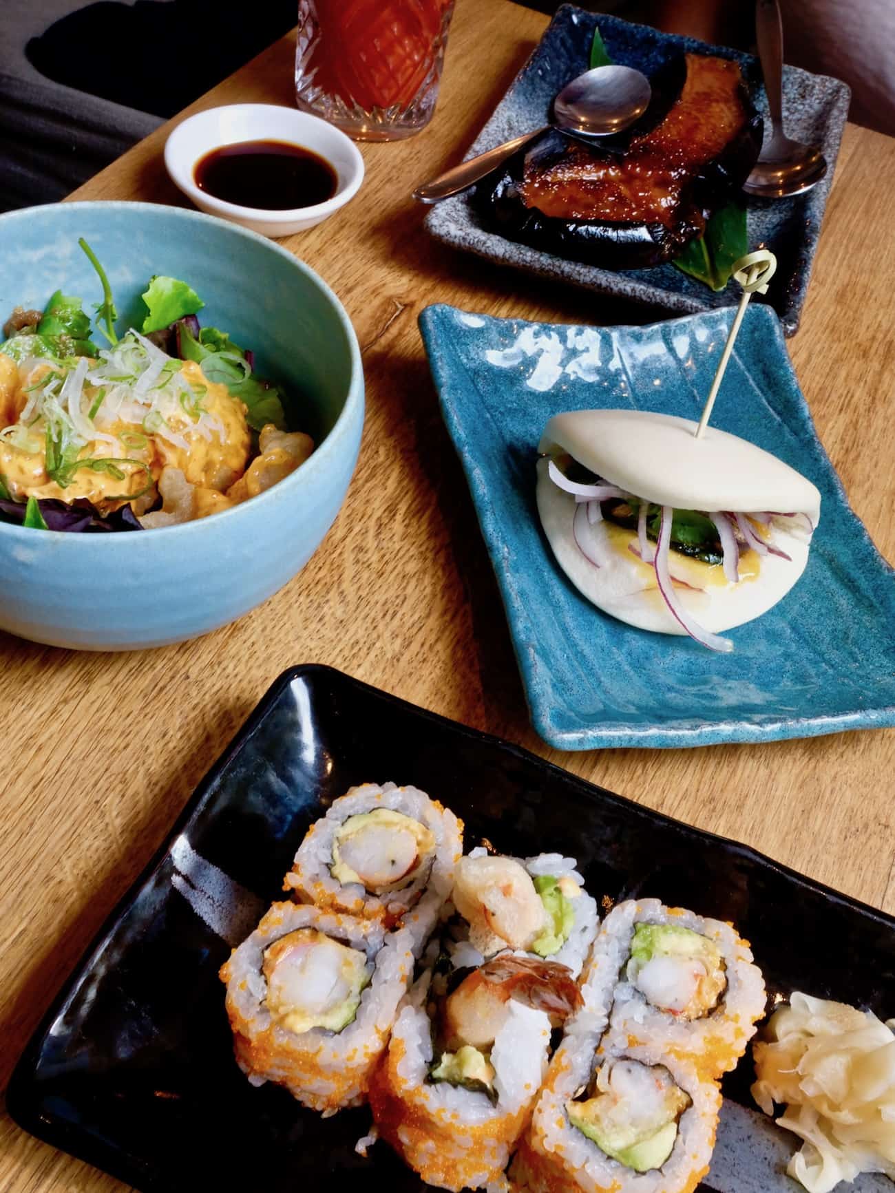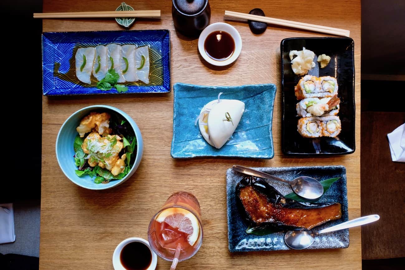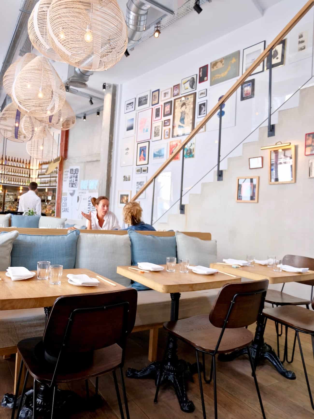 Pour siroter un cocktail ou pour déguster des tapas japonaises, il fait bon passer un moment dans ce lieu ultra léché, lumineux, haut sous plafond, boisé et cosy avec ces gros coussins aux 50 nuances de bleus. Les assaisonnements sont particulièrement réussis, il faut dire que je résiste rarement au yuzu. Ne ratez pas l’aubergine gratinée, carrément addictive… Tout est frais, équilibré, bien assaisonné… Très belle carte de cocktails et de sakés. Comme dans tous les restos proposant des assiettes à partager, l’addition peut vite grimper.