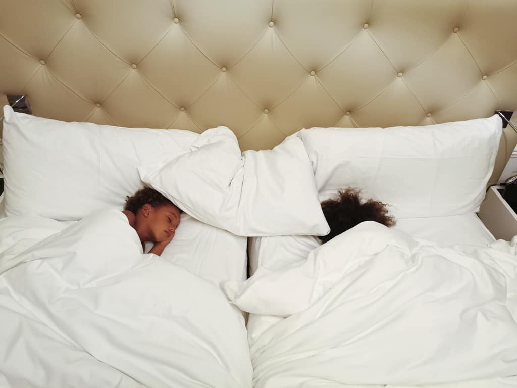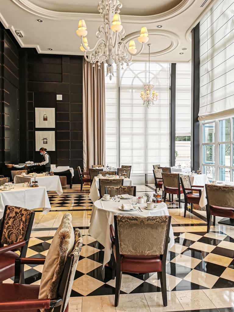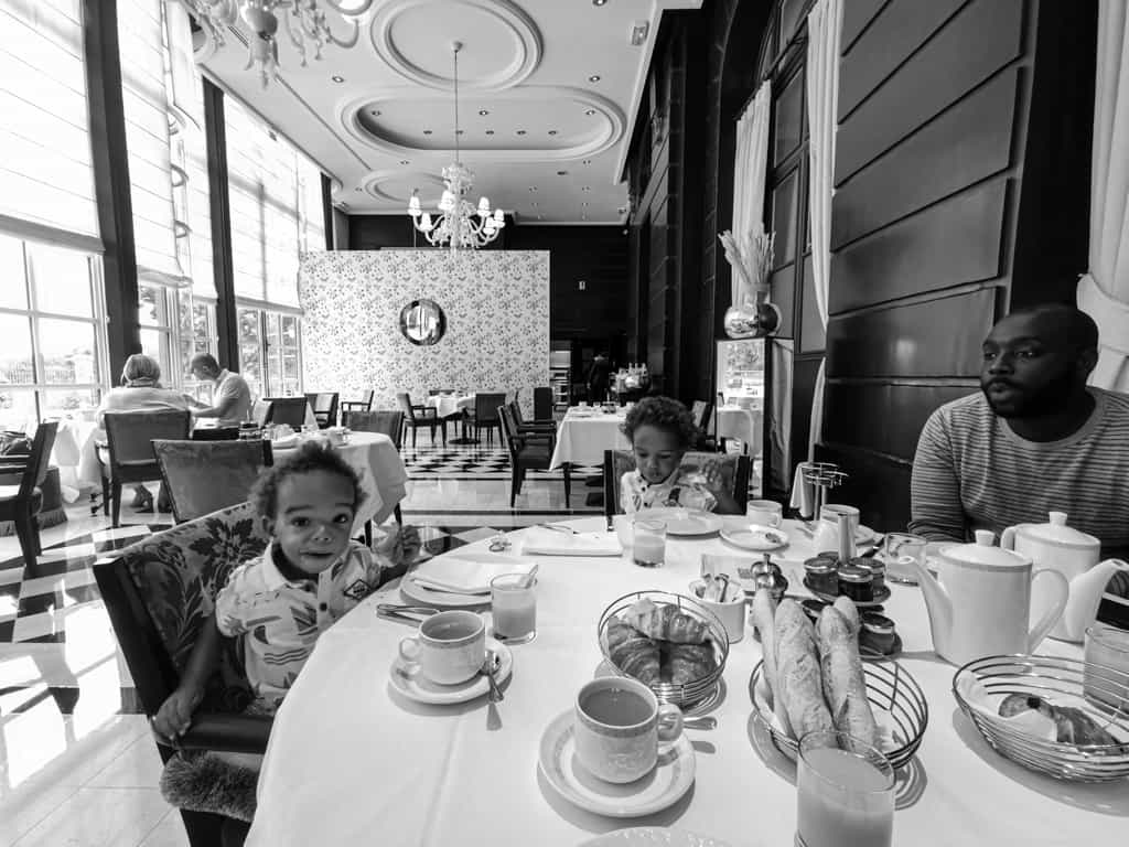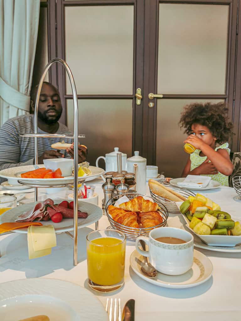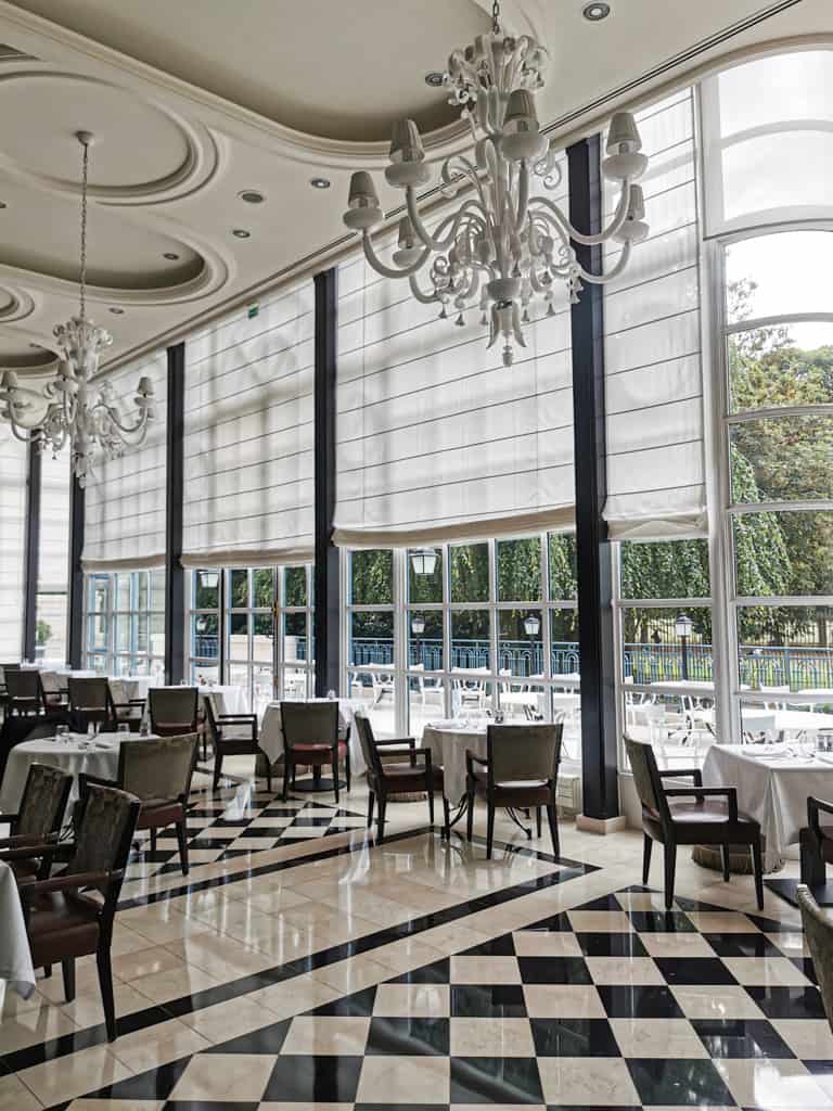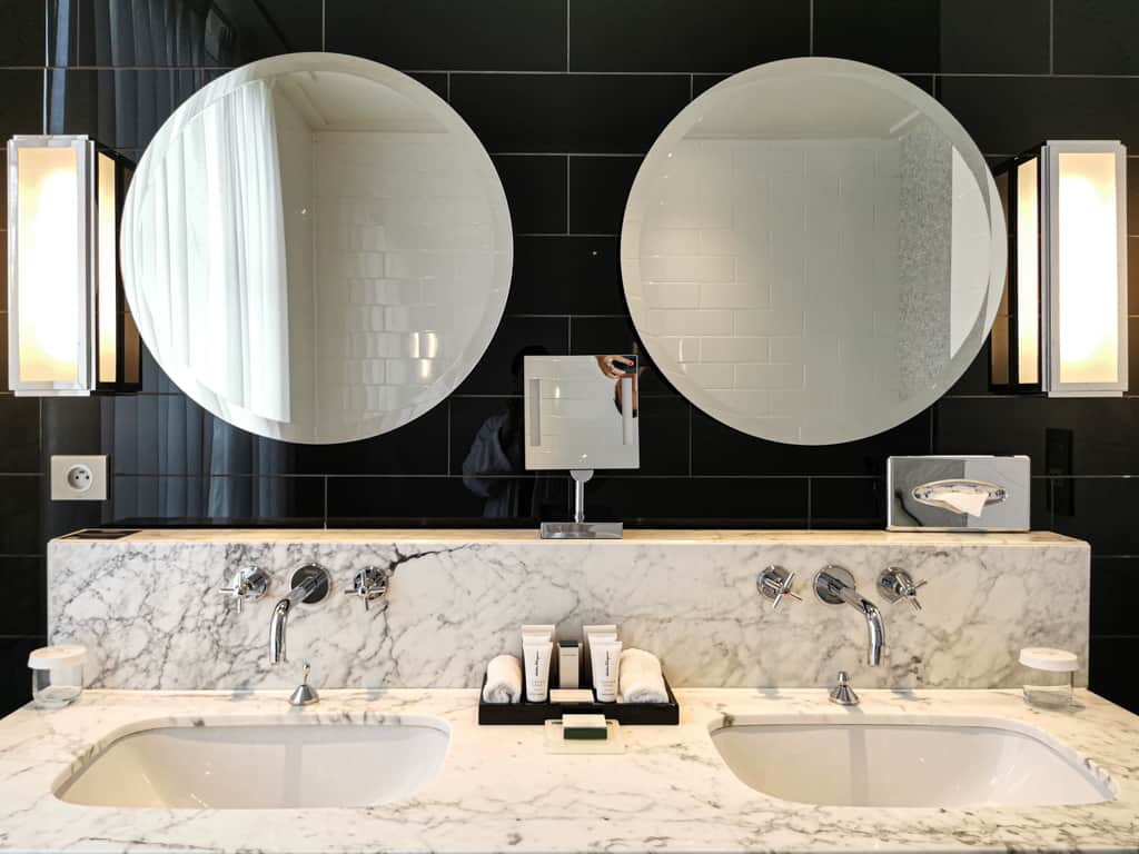 Nous avons passé une nuit au Trianon Palace en famille dans une magnifique suite familiale. Deux chambres communicantes, avec vue sur les jardins de l’hôtel, d’une superficie de 60m2. Un king bed et deux grands lits dans la seconde chambre, une magnifique salle de bain monochrome, double vasque, une baignoire et une douche. Evidemment, la chambre offre un confort immense et un lit duquel on aimerait jamais se relever.